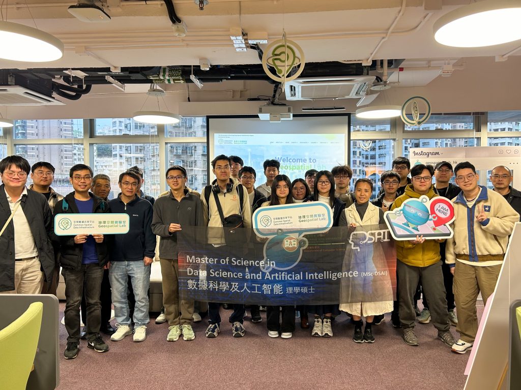 隨李檀博士和張晨博士的帶領下,計算機科學系的同學於2025年11月20日參觀了地理空間實驗室(GeoLab)。地理空間實驗室由香港特別行政區政府發展局成立,旨在營造一個地理空間社區,透過鼓勵年輕一代、初創企業及創意人才一同討論、探索和交流意見,發揮空間數據的潛力,從而改善生活質素,並為企業創造商機。