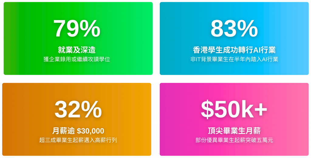 Click HereClick Here. Previous Next 數據科學及人工智能理學碩士課程 大數據科技,結合人工智能(AI)技術,正在改寫我們的決策方式。新科技帶來的顛覆性變化比目皆是。這門嶄新而全面的碩士課程是為來自不同背景、對新一代大數據和AI應用有興趣的學生而設計。在課程中,學生將會掌握大數據和機器學習相關的最新知識,以及它們的應用實例,讓學生在數據科學和AI時代的各行各業中領先一步。 下載課程單張 課程特色 AWS認證,實戰導向核心科目獲AWS官方認證,協助學生掌握產業核心技能。已有多名學生考取「AWS Cloud Practitioner」, 「AWS Machine Learning Specialty」 及 「AWS Solution Architect」專業資格認證。 轉行AI首選,踏入高薪行業歡迎多元背景學生,幫助轉行AI行業,為您開啟穩健職業道路。 2025届香港本地生中,超過八成非IT背景畢業生在半年內已踏入AI行業。 小班課堂,高質教學採用小班制,每節課程融入實作環節,確保學習效果。教學滿意度高達 5.78 (滿分6),深受學生一致好評。 科研機會,繼續深造選修課程涵蓋科研導向科目《碩士研究項目》,提供參與前沿科研的寶貴機會,助力學子進入知名學府繼續攻讀博士。 就業數據 (數據更新截至2025年12月11日) 重要資料 修讀模式:全日制 (1年) / 兼讀制 (2年) 教學語言:英語 收生報名日期 :第一輪入學申請 – 2025年10月27日 至 2026年3月31日 立即申請